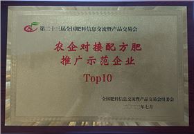 “农企对接配方肥推广示范企业Top10”