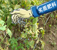 选不到放心肥,一味追求价格便宜的劣质肥导致作物中后期脱肥,生长乏力,庄稼收成差。