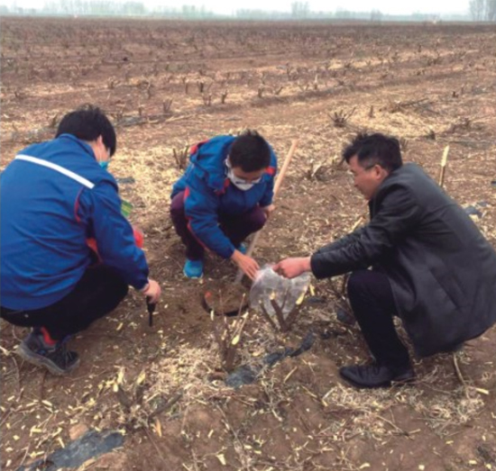 3月24日起,红四方农艺师王坤开始奔波在服务客户的旅途中,到达河南睢县后与当地业务经理一同前往田间地头,通过田间查看以及仪器测量帮助农户找到了小麦长势不好的原因,并提出有效的解决方案。随后马不停蹄地赶往下一个地点为种植大户提供测土服务,同时协助业务经理召开网点会议,从大家关心的问题出发,形象生动地为大家介绍了花生的科学种植技术,获得了用户的一致称赞。