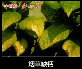 叶色淡绿,而后顶芽向下弯曲,幼叶的尖端及边缘枯萎。植株矮化,呈异常的深绿色,极端缺乏时,顶芽死亡。下部叶片增厚,有时也出现一些枯死红棕色斑点。如果开花期缺钙,则花及芽都有凋萎的倾向。花冠的顶部枯死,以致雌蕊显著地突出,花冠上可能出现枯死的斑点。